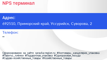 NPS, терминал по адресу 692510, Приморский край, Уссурийск, Суворова, 2 в дальнейшем Организация, размещена в следующих категориях: