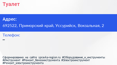 Туалет по адресу 692522, Приморский край, Уссурийск, Вокзальная, 2 в дальнейшем Организация, размещена в следующих категориях: