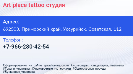 Art place tattoo, студия по адресу 692503, Приморский край, Уссурийск, Советская, 112 в дальнейшем Организация, размещена в следующих категориях: