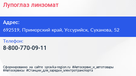 Лупоглаз, линзомат по адресу 692519, Приморский край, Уссурийск, Суханова, 52 в дальнейшем Организация, размещена в следующих категориях: