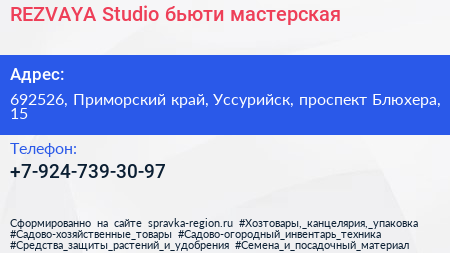 REZVAYA Studio, бьюти-мастерская по адресу 692526, Приморский край, Уссурийск, проспект Блюхера, 15 в дальнейшем Организация, размещена в следующих категориях: