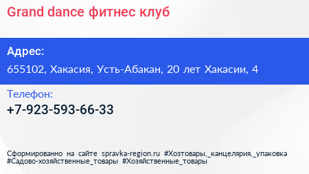 Grand dance, фитнес-клуб по адресу 655102, Хакасия, Усть-Абакан, 20 лет Хакасии, 4 в дальнейшем Организация, размещена в следующих категориях: