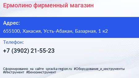 Ермолино, фирменный магазин по адресу 655100, Хакасия, Усть-Абакан, Базарная, 1 к2 в дальнейшем Организация, размещена в следующих категориях: