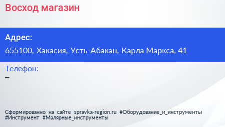 Восход, магазин по адресу 655100, Хакасия, Усть-Абакан, Карла Маркса, 41 в дальнейшем Организация, размещена в следующих категориях: