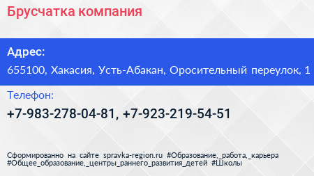 Брусчатка, компания по адресу 655100, Хакасия, Усть-Абакан, Оросительный переулок, 1 в дальнейшем Организация, размещена в следующих категориях: