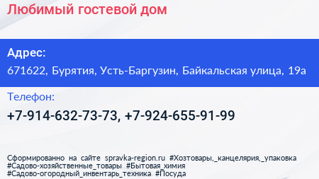 Любимый, гостевой дом по адресу 671622, Бурятия, Усть-Баргузин, Байкальская улица, 19а в дальнейшем Организация, размещена в следующих категориях: