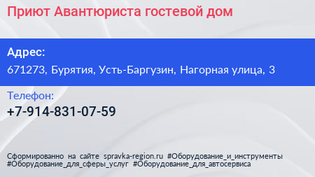 Приют Авантюриста, гостевой дом по адресу 671273, Бурятия, Усть-Баргузин, Нагорная улица, 3 в дальнейшем Организация, размещена в следующих категориях: