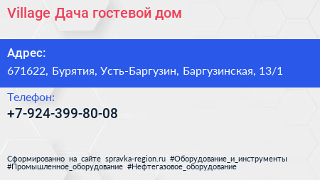 Village-Дача, гостевой дом по адресу 671622, Бурятия, Усть-Баргузин, Баргузинская, 13/1 в дальнейшем Организация, размещена в следующих категориях: