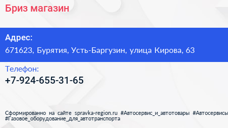 Бриз, магазин по адресу 671623, Бурятия, Усть-Баргузин, улица Кирова, 63 в дальнейшем Организация, размещена в следующих категориях: