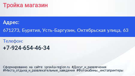 Тройка, магазин по адресу 671273, Бурятия, Усть-Баргузин, Октябрьская улица, 63 в дальнейшем Организация, размещена в следующих категориях: