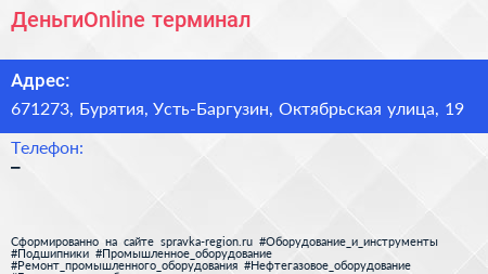 ДеньгиOnline, терминал по адресу 671273, Бурятия, Усть-Баргузин, Октябрьская улица, 19 в дальнейшем Организация, размещена в следующих категориях: