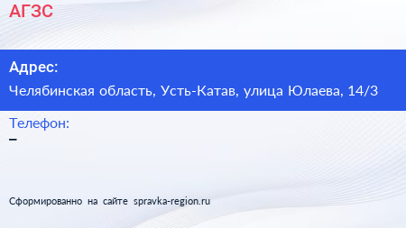 АГЗС по адресу Челябинская область, Усть-Катав, улица Юлаева, 14/3 в дальнейшем Организация, размещена в следующих категориях: