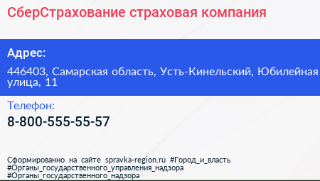 СберСтрахование, страховая компания по адресу 446403, Самарская область, Усть-Кинельский, Юбилейная улица, 11 в дальнейшем Организация, размещена в следующих категориях: