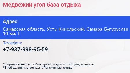 Медвежий угол, база отдыха по адресу Самарская область, Усть-Кинельский, Самара-Бугуруслан 14 км, 1 в дальнейшем Организация, размещена в следующих категориях: