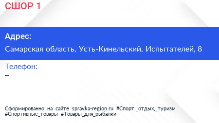 СШОР №1 по адресу Самарская область, Усть-Кинельский, Испытателей, 8 в дальнейшем Организация, размещена в следующих категориях: