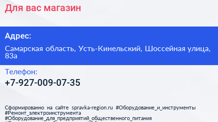 Для вас, магазин по адресу Самарская область, Усть-Кинельский, Шоссейная улица, 83а в дальнейшем Организация, размещена в следующих категориях: