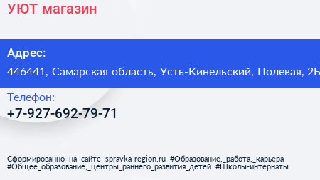 УЮТ, магазин по адресу 446441, Самарская область, Усть-Кинельский, Полевая, 2Б в дальнейшем Организация, размещена в следующих категориях: