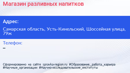 Магазин разливных напитков по адресу Самарская область, Усть-Кинельский, Шоссейная улица, 79ж в дальнейшем Организация, размещена в следующих категориях: