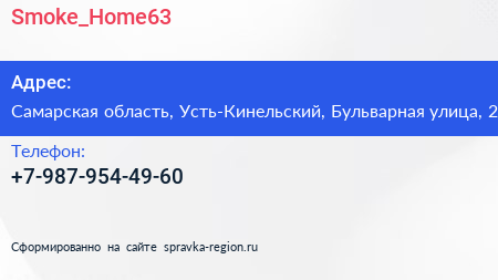 Smoke_Home63 по адресу Самарская область, Усть-Кинельский, Бульварная улица, 2 в дальнейшем Организация, размещена в следующих категориях: