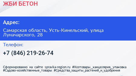 ЖБИ-БЕТОН по адресу Самарская область, Усть-Кинельский, улица Луначарского, 28 в дальнейшем Организация, размещена в следующих категориях: