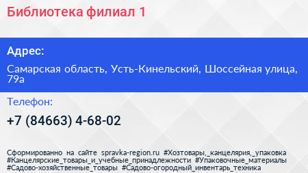 Библиотека-филиал №1 по адресу Самарская область, Усть-Кинельский, Шоссейная улица, 79а в дальнейшем Организация, размещена в следующих категориях: