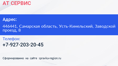 АТ-СЕРВИС по адресу 446441, Самарская область, Усть-Кинельский, Заводской проезд, 8 в дальнейшем Организация, размещена в следующих категориях: