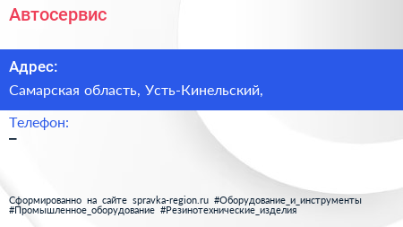 Автосервис по адресу Самарская область, Усть-Кинельский, в дальнейшем Организация, размещена в следующих категориях: