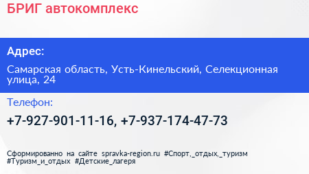 БРИГ, автокомплекс по адресу Самарская область, Усть-Кинельский, Селекционная улица, 24 в дальнейшем Организация, размещена в следующих категориях: