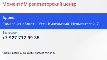 МоментУМ, репетиторский центр по адресу Самарская область, Усть-Кинельский, Испытателей, 7 в дальнейшем Организация, размещена в следующих категориях: