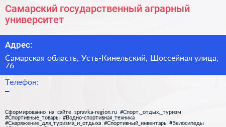 Самарский государственный аграрный университет по адресу Самарская область, Усть-Кинельский, Шоссейная улица, 76 в дальнейшем Организация, размещена в следующих категориях: