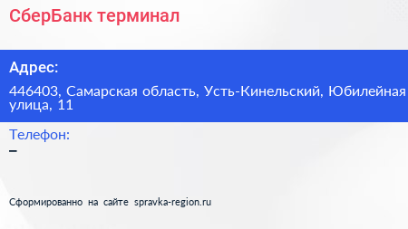 СберБанк, терминал по адресу 446403, Самарская область, Усть-Кинельский, Юбилейная улица, 11 в дальнейшем Организация, размещена в следующих категориях: