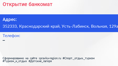 Открытие, банкомат по адресу 352333, Краснодарский край, Усть-Лабинск, Вольная, 129а в дальнейшем Организация, размещена в следующих категориях: