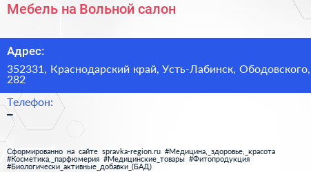 Мебель на Вольной, салон по адресу 352331, Краснодарский край, Усть-Лабинск, Ободовского, 282 в дальнейшем Организация, размещена в следующих категориях: