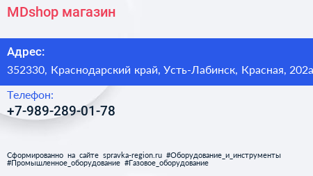 MDshop, магазин по адресу 352330, Краснодарский край, Усть-Лабинск, Красная, 202а в дальнейшем Организация, размещена в следующих категориях: