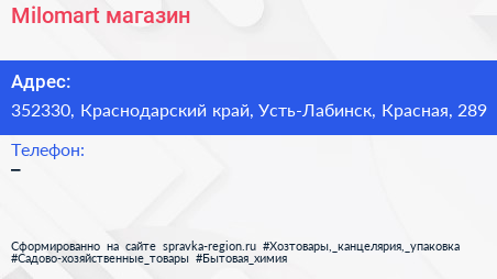 Milomart, магазин по адресу 352330, Краснодарский край, Усть-Лабинск, Красная, 289 в дальнейшем Организация, размещена в следующих категориях: