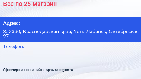 Все по 25, магазин по адресу 352330, Краснодарский край, Усть-Лабинск, Октябрьская, 97 в дальнейшем Организация, размещена в следующих категориях: