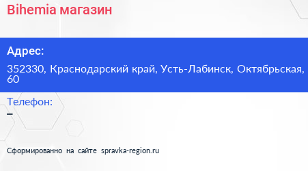 Bihemia, магазин по адресу 352330, Краснодарский край, Усть-Лабинск, Октябрьская, 60 в дальнейшем Организация, размещена в следующих категориях: