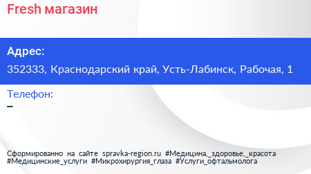 Fresh, магазин по адресу 352333, Краснодарский край, Усть-Лабинск, Рабочая, 1 в дальнейшем Организация, размещена в следующих категориях: