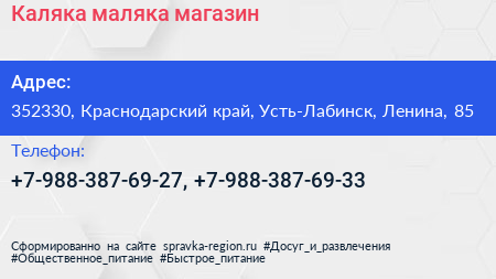 Каляка маляка, магазин по адресу 352330, Краснодарский край, Усть-Лабинск, Ленина, 85 в дальнейшем Организация, размещена в следующих категориях: