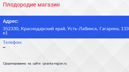 Плодородие, магазин по адресу 352330, Краснодарский край, Усть-Лабинск, Гагарина, 133 к1 в дальнейшем Организация, размещена в следующих категориях: