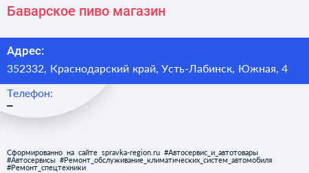 Баварское пиво, магазин по адресу 352332, Краснодарский край, Усть-Лабинск, Южная, 4 в дальнейшем Организация, размещена в следующих категориях: