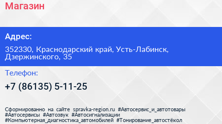 Магазин по адресу 352330, Краснодарский край, Усть-Лабинск, Дзержинского, 35 в дальнейшем Организация, размещена в следующих категориях: