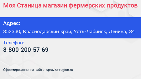 Моя Станица, магазин фермерских продуктов по адресу 352330, Краснодарский край, Усть-Лабинск, Ленина, 34 в дальнейшем Организация, размещена в следующих категориях: