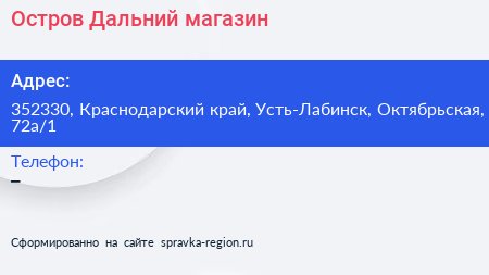 Остров Дальний, магазин по адресу 352330, Краснодарский край, Усть-Лабинск, Октябрьская, 72а/1 в дальнейшем Организация, размещена в следующих категориях: