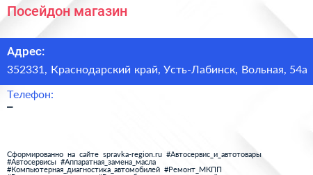 Посейдон, магазин по адресу 352331, Краснодарский край, Усть-Лабинск, Вольная, 54а в дальнейшем Организация, размещена в следующих категориях: