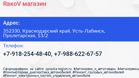 RакоV, магазин по адресу 352330, Краснодарский край, Усть-Лабинск, Пролетарская, 13/2 в дальнейшем Организация, размещена в следующих категориях: