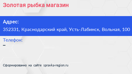 Золотая рыбка, магазин по адресу 352331, Краснодарский край, Усть-Лабинск, Вольная, 100 в дальнейшем Организация, размещена в следующих категориях: