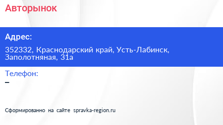 Авторынок по адресу 352332, Краснодарский край, Усть-Лабинск, Заполотняная, 31а в дальнейшем Организация, размещена в следующих категориях: