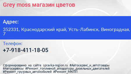 Grey moss, магазин цветов по адресу 352331, Краснодарский край, Усть-Лабинск, Виноградная, 7 в дальнейшем Организация, размещена в следующих категориях: