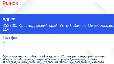 Рынок по адресу 352330, Краснодарский край, Усть-Лабинск, Октябрьская, 114 в дальнейшем Организация, размещена в следующих категориях: